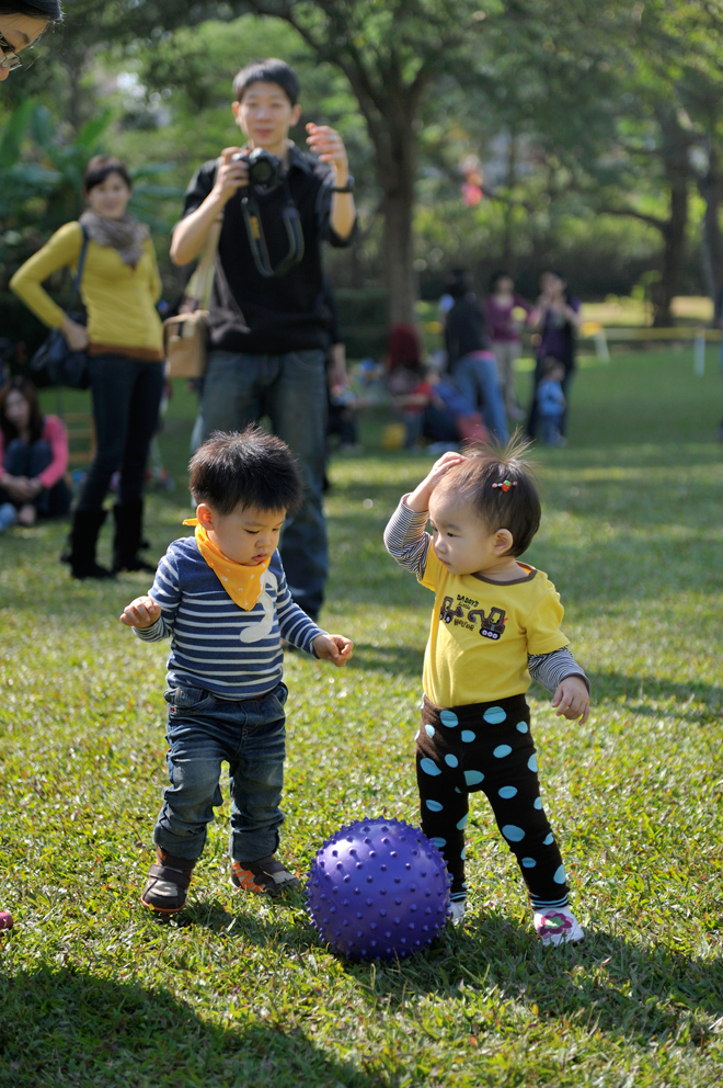這張照片的前景跟主題當然就是Zoe跟Eason的互動,而後面的背景是Eason的爸爸跟媽媽,在另一端做著跟我一樣的動作,就是拿相機拍自己的小孩。我覺得這類的生活情節,也是照片很好的元素之一。運用對焦點跟景深的相互搭配,就能夠讓畫面富有故事性,而觀賞者也會以自己的經驗來解讀照片中的劇情,進而產生一些互動與共鳴。Nikon D700 & AF-S NIKKOR 24-70mm f/2.8G ED