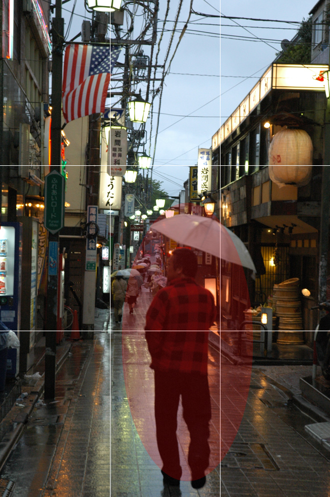 這一天傍晚氣候轉涼,且整天都下著毛毛的細雨。準備去搭JR的時候,在路上看到這一幅景致,讓我聯想到鄭愁予「錯誤」這首詩裡「恰若青石的街道向晚」的這一段。於是我邊撐傘,邊從大衣裡拿出相機,快速的用垂直構圖的方式,拍下了這張照片。很多的時候,我們會因為眼前的景物,去觸發了某種心情,這時候如果相機剛好在身邊,都會覺得這是一件幸福的事。Nikon D70 & AF-S 18-70mm Nikkor f/3.5-4.5G ED