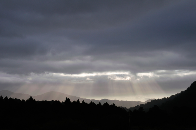 这个角度拍摄,远处树林与山峰处于逆光的角度,而上方的云层则出现了所谓的「耶稣光」。逆光的主体,其轮廓会非常鲜明,这张照片的画面元素,可区分为前景的山林、穿透云层的光线、光线后方的山峦,以及上方浓厚的云层。层层的堆栈表现,一方面可以营造出景深感,二来也增加了画面的丰富度。Nikon D300 & AF-S VR Zoom-Nikkor 18-200mm f/3.5-5.6 G ED DX